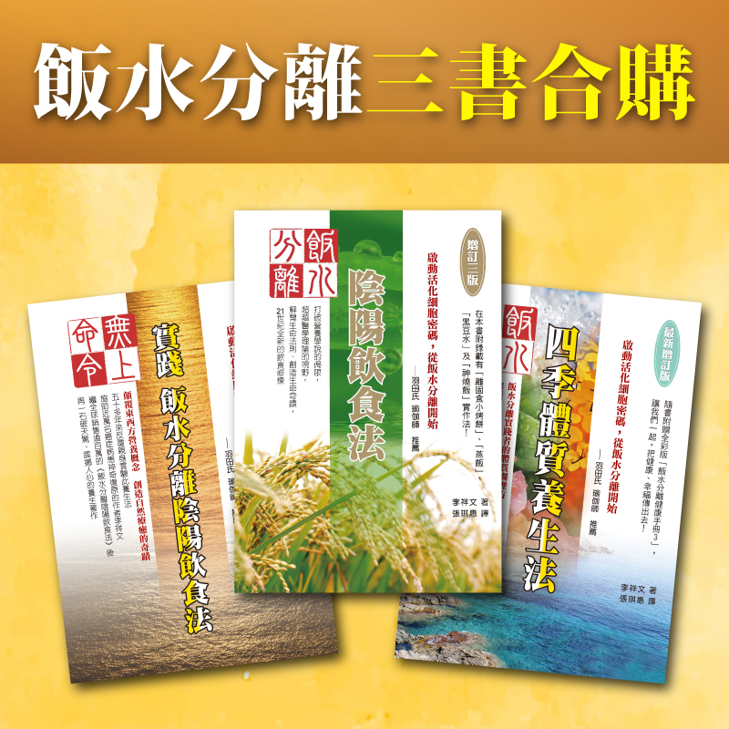 飯水分離與大地陰陽同步的飲食法,透過飯水分離得以開啟「胃」的覺知力,停止喝過多的水,進而除濕排寒,調節陰陽,交替修煉活化細胞,達到體內環境改造與深沉淨化調理。